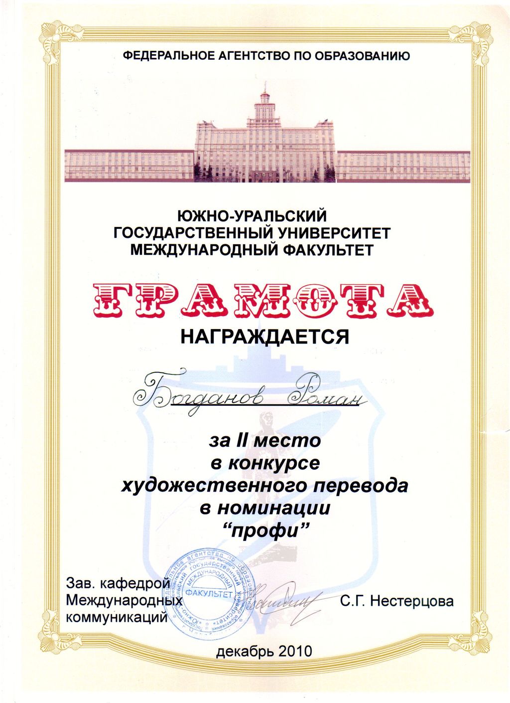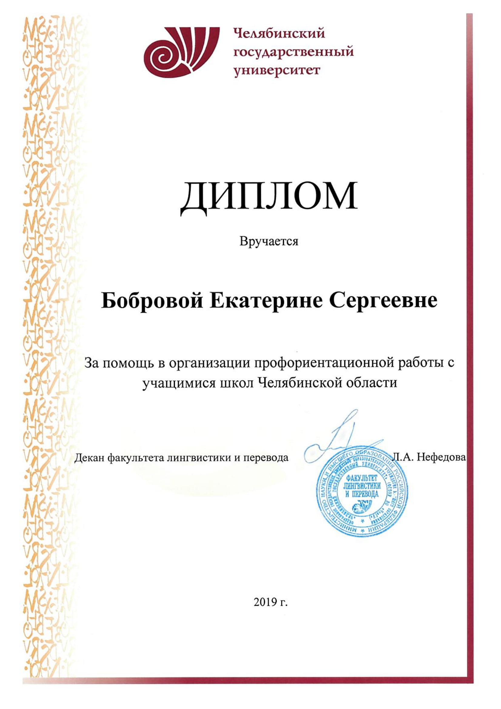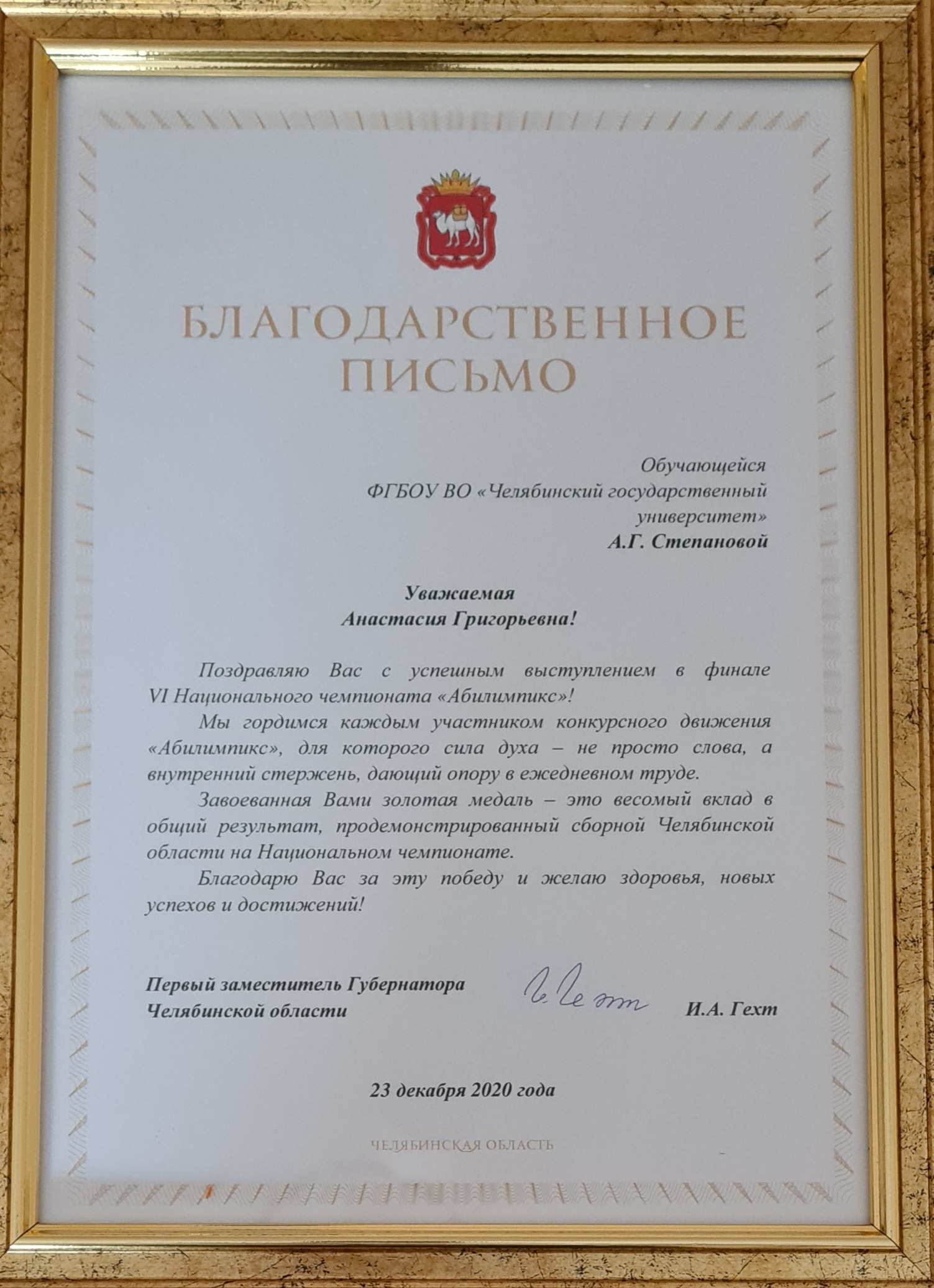 Южно-Уральская торгово-промышленная палата, Уральский завод специального арматуростроения и Ассоциация устных и письменных переводчиков «PQITA» выражают глубокую благодарность за подготовку высококвалифицированных выпускников.
